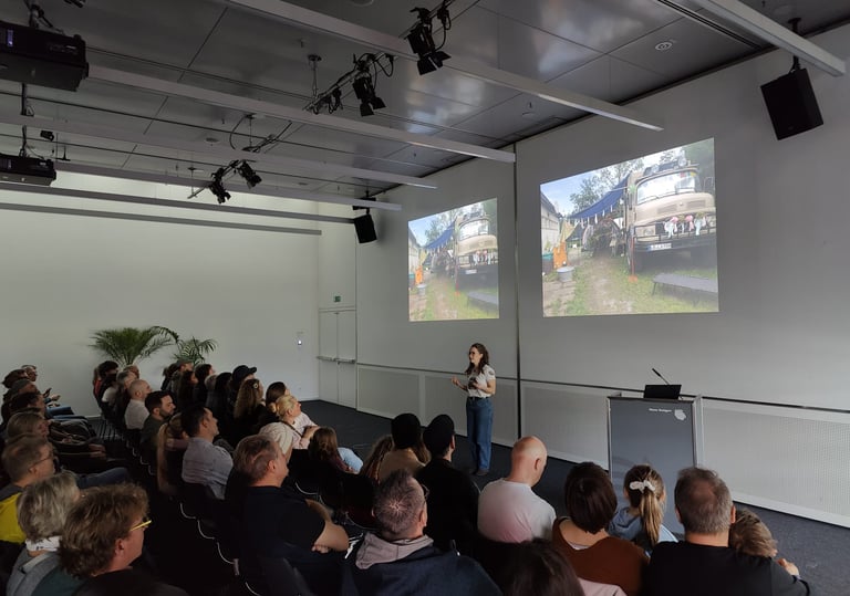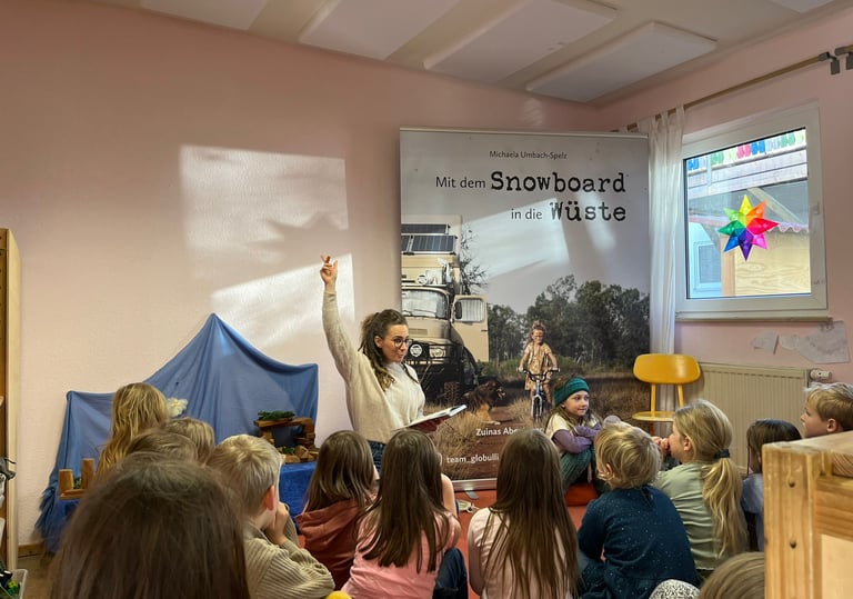 Ob auf der Bühne oder im Klassenzimmer - mit unseren Reisevorträge und interaktiven Lesungen unseres Buches nehmen wir Kinder und Erwachsene mit auf unsere außergewöhnliche Familienreise in unserem LKW "Bolle" um die Welt.